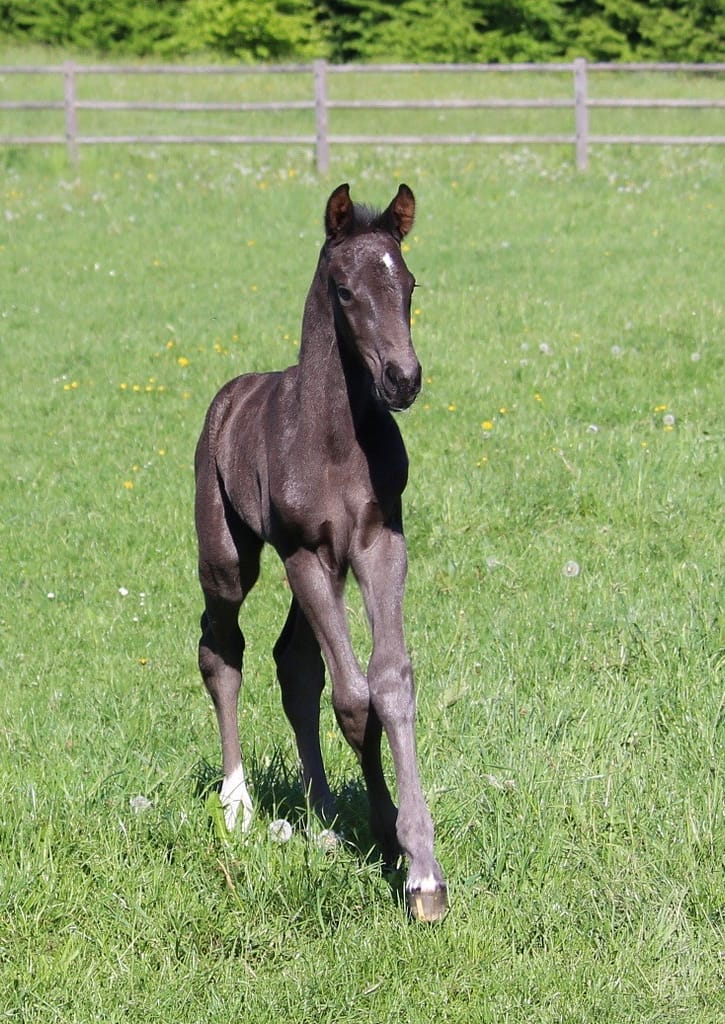 Abstammung: Mutter Fatima ME, Oldenburger Hauptprämienstute, wurde bereits als Fohlen prämiert und absolvierte im Alter von 3 Jahren ihre Stutenleistungsprüfung mit sensationellen 51 Punkten. Sie stammt aus dem begehrten Holsteiner Stamm 741, der für den ganz großen Sport im Springen steht. Ihr Vater Nekton, Sohn des Weltvererbers Nimmerdor, war bis 1,50m im internationalen Springsport unterwegs und zählt mittlerweile zahlreiche gekörte Hengste und Staatsprämienstuten zu seinen Nachkommen, die alle durch ihre sehr guten Bewegungen und überragendes Vermögen überzeugen.