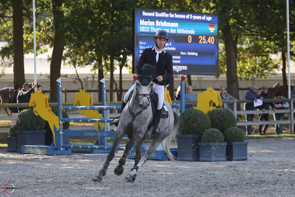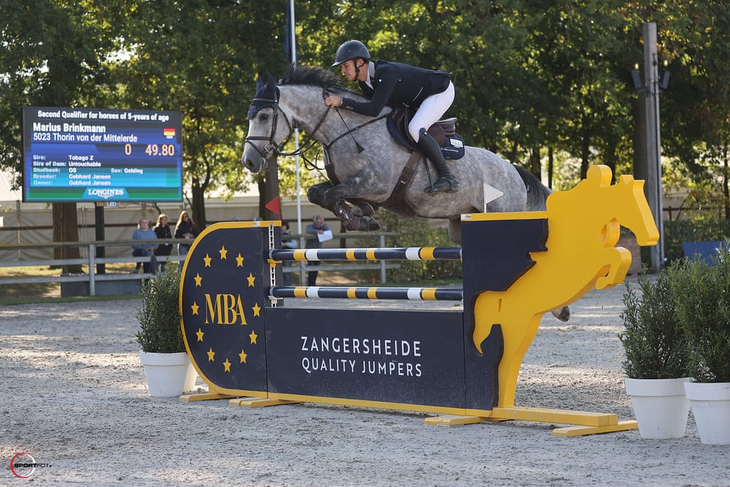 Thorin selbst startete 5-jährig bei den Weltmeisterschaften der jungen Springpferde in Lanaken (BEL). Hier kam er mit zwei überragenden fehlerfreien Runden bis ins Finale.
