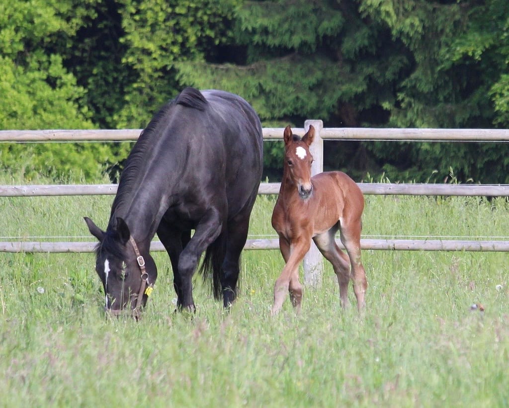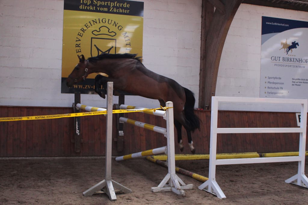 Abstammung: Die belgische (BWP) Mutter Kayley DV hat 3 jährig ihre Stutenleistungsprüfung beim Hannoveraner Verband abgelegt und wurde anschließend behutsam in den Springsport gebracht. Hier war sie bis 1,30m erfolgreich bevor sie dann zurück in die Zucht ging. Denn auch für eine erfolgreiche Zucht sind die Voraussetzungen perfekt. Ihr Pedigree bietet alles was man für den erfolgreichen Springsport braucht. So war Vater Ustinov zum Beispiel Siegerhengst der KWPN-Hengstkörung 2004. Ihn zeichnen seine Spitzen-Galoppade sowie seine hervorragende Springtechnik aus, die er wiederum von seinem Vater, dem berühmten Achill-Libero H sowie Muttervater Nimmerdor geerbt hat. Kayley`s Mutter Anouska van de Fruitkorf, die selbst bis 1,60m im internationalen Springsport erfolgreich ist, führt ebenfalls das wertvolle Blut des Nimmerdor sowie weitere hocherfolgreiche Gene von Vererberlegenden wie zum Beispiel Furioso II, Gotthard und Der Löwe. Denn, sowohl ihr Vater Kannan als auch Muttervater Darco hatten über Jahre auf der WBFSH Rangliste der weltbesten Vererber einen Platz unter den Top 5 buchstäblich abonniert.